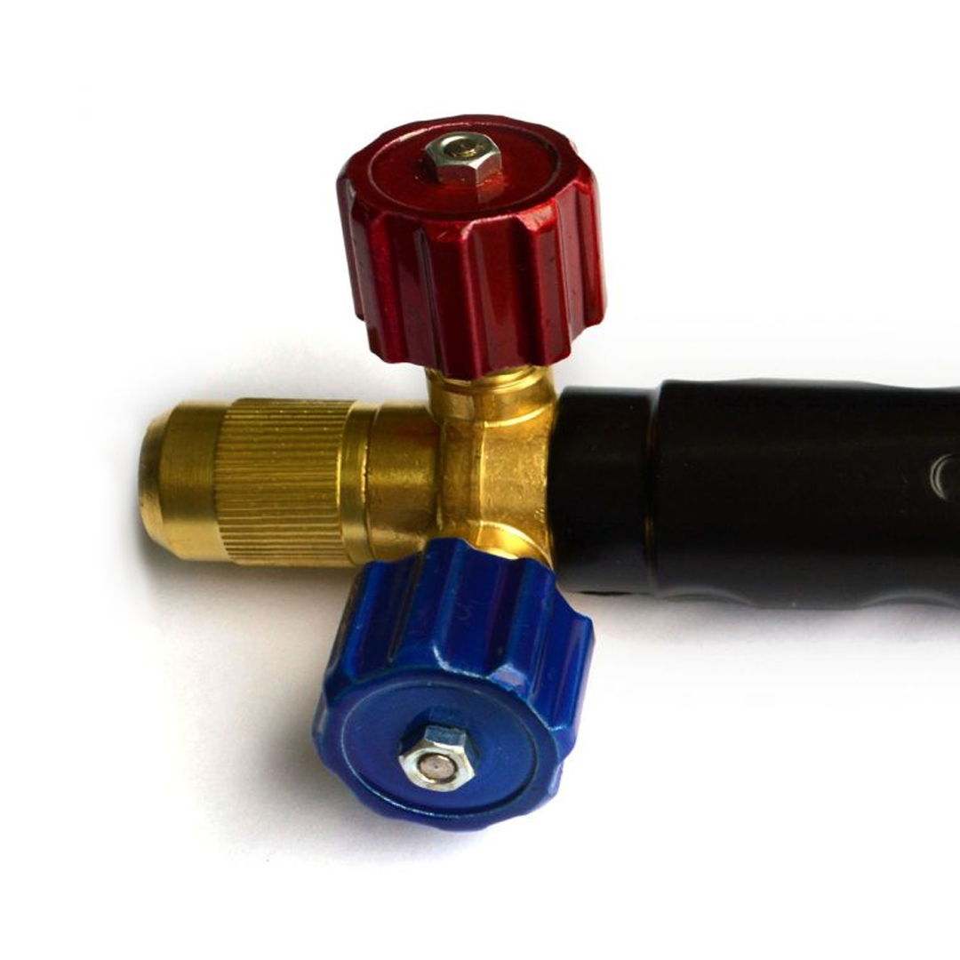 É leve, versátil seu peso aproximado 0,4 Kg e comprimento de 230 mm, tem um design diferenciado com punho anatômico para melhor encaixe das mãos do operador, suas válvulas de regulagem são feitas em aço inoxidável do tipo agulha para uma regulagem dos gases mais precisa.