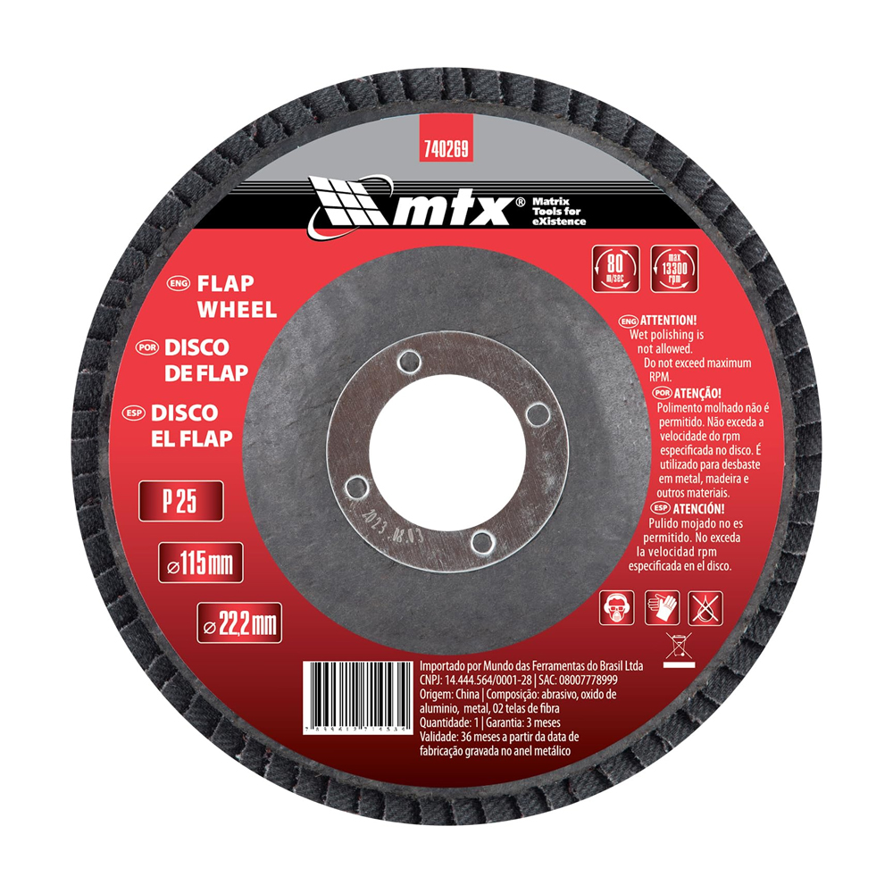 - 5 Discos de Lixa Flap 115x22,2mm Grão 25 Mtx